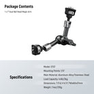 - Sistema de bloqueo mejorado y ajuste suave : la estructura de bloqueo mejorada en la junta de engranaje del brazo de la cámara está construida con rodamientos de bolas de empuje para una rotación suave y eficiente. La palanca ergonómica ampliada garantiza un par de torsión preciso, lo que permite un bloqueo rápido de los brazos en un segundo, ahorrando tiempo y esfuerzo.