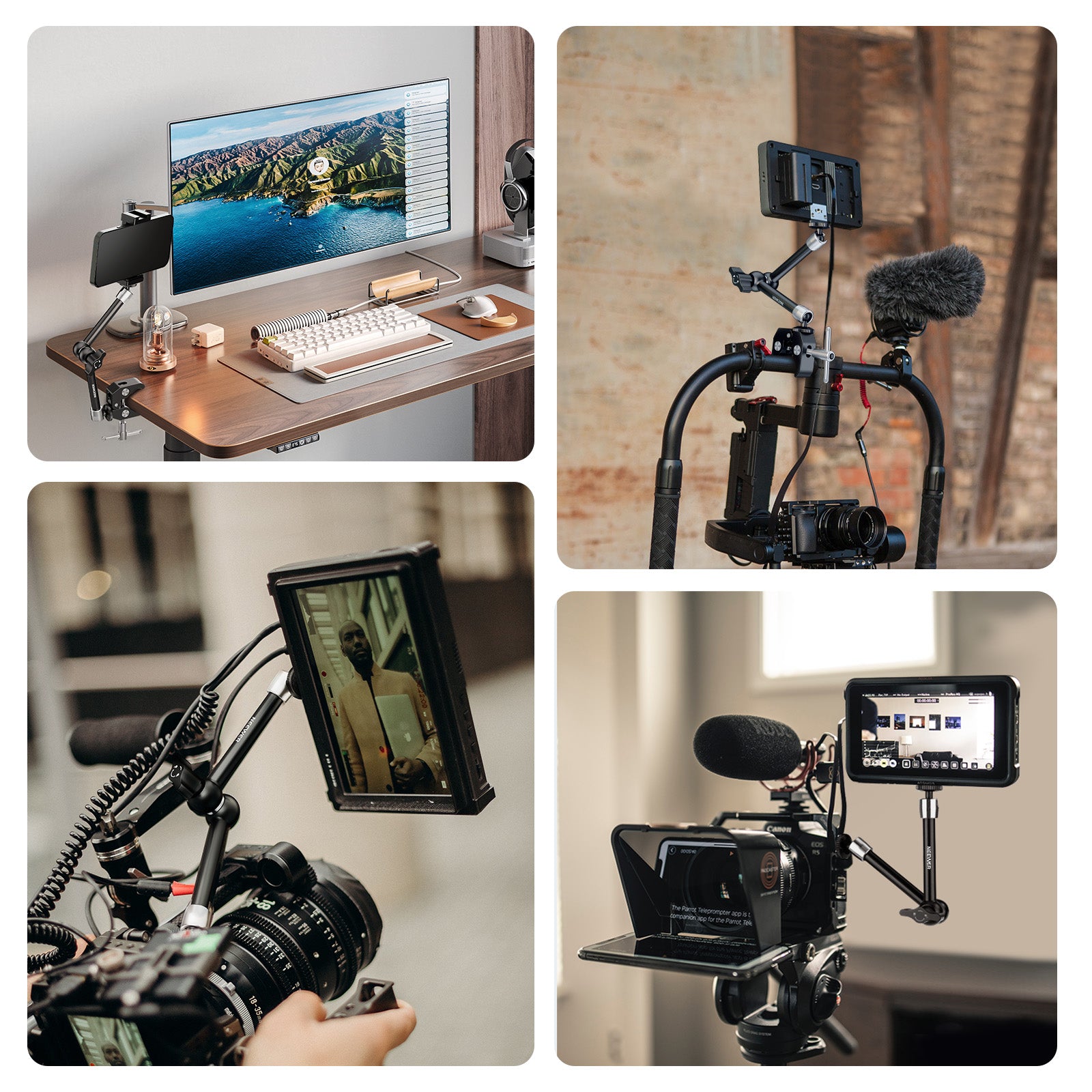 - Montaje sencillo y seguro : el brazo mágico de fricción articulado tiene dos tornillos de 1/4" y la súper abrazadera tiene roscas de 1/4" y 3/8". El material duradero de aleación de aluminio y acero inoxidable resiste la abrasión y el óxido y garantiza una capacidad de carga máxima de 4,4 lb/2 kg.
