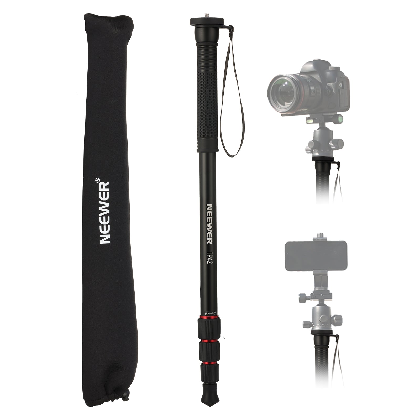 • 4 Section Height Adjustable- Extend the camera mono pod from 22.6"/57.5cm to 66.5"/169cm, and quick lock with a simple twist. Shooting at a low angle or for an expansive panorama view, you can flexibly adjust to get a satisfying shot