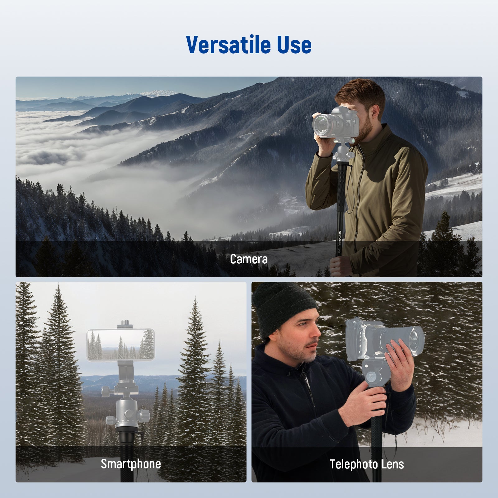• Robust & Portable- Designed for traveling, the monopod is made of aluminum alloy and has a max 1"/25mm tube diameter for DSLR cameras up to 22lb/10kg. Weighing just 16oz/456g, it is highly portable. Unlike heavy tripods (tri pod stands), use it as a selfie, walking, hiking stick, or trekking pole. Versatile content creator essential and influencer must have for exploring outdoors, Europe travel vlogging, video shooting, taking selfies with friends, or capturing stunning landscapes