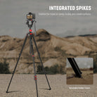 - Patas de trípode reversibles : rango de altura: 24"-72" (61-181 cm). Las patas se pueden colocar en 3 ángulos para fotografías desde ángulos bajos, macro y desde arriba. Las patas de goma brindan mayor estabilidad y protección contra rayones. Retire las patas de goma para usar púas para superficies con barro, arena y otras superficies irregulares.