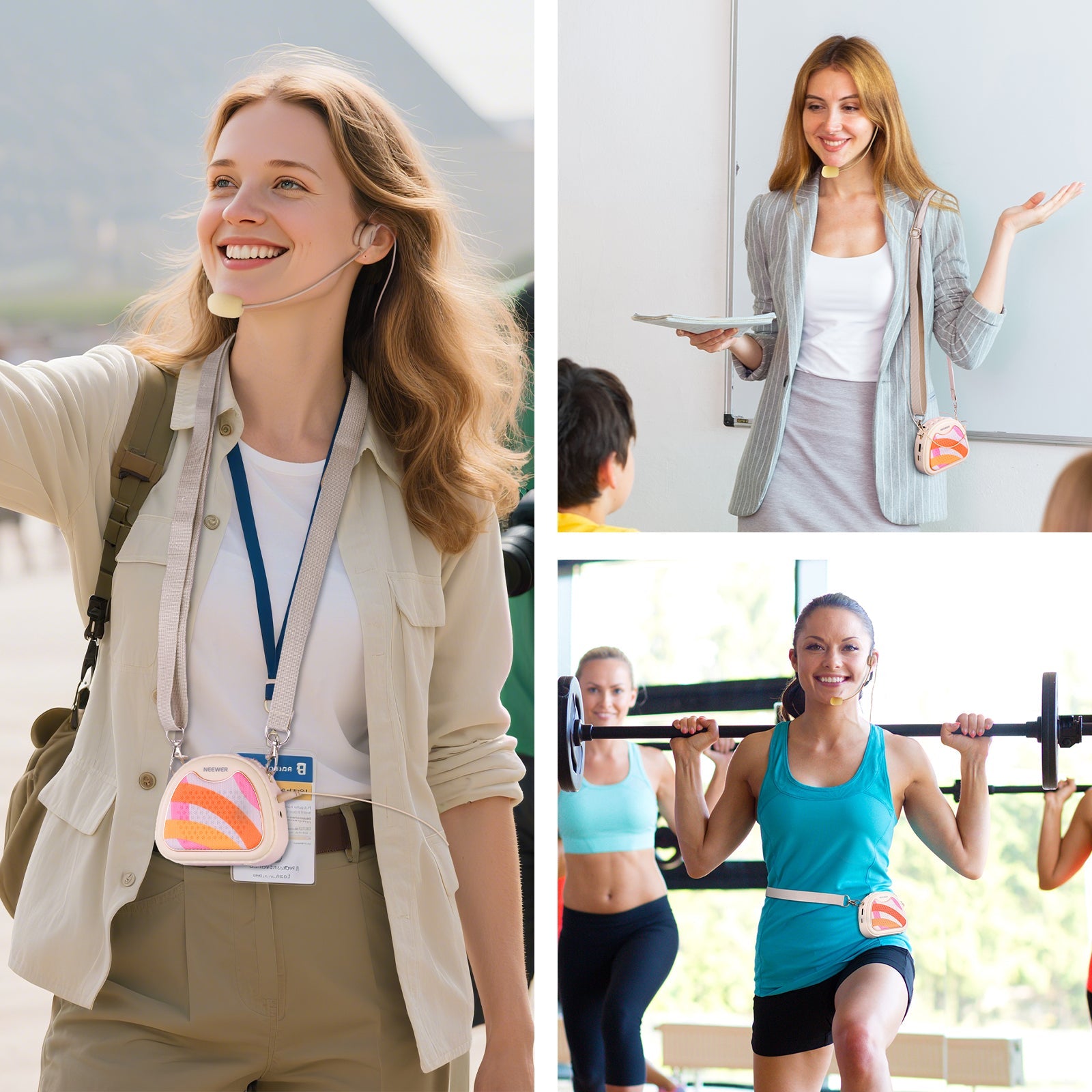 - Multifunctional Voice Amplifier- This voice amplifier with headset microphone ensures clear and loud voice projection, ideal supplies and must have accessories for classroom teachers, singing teaching, fitness instructors, tour guides, and others professionals who need their voice heard clearly in noisy environments. An adjustable and detachable shoulder strap offers convenient portability during use