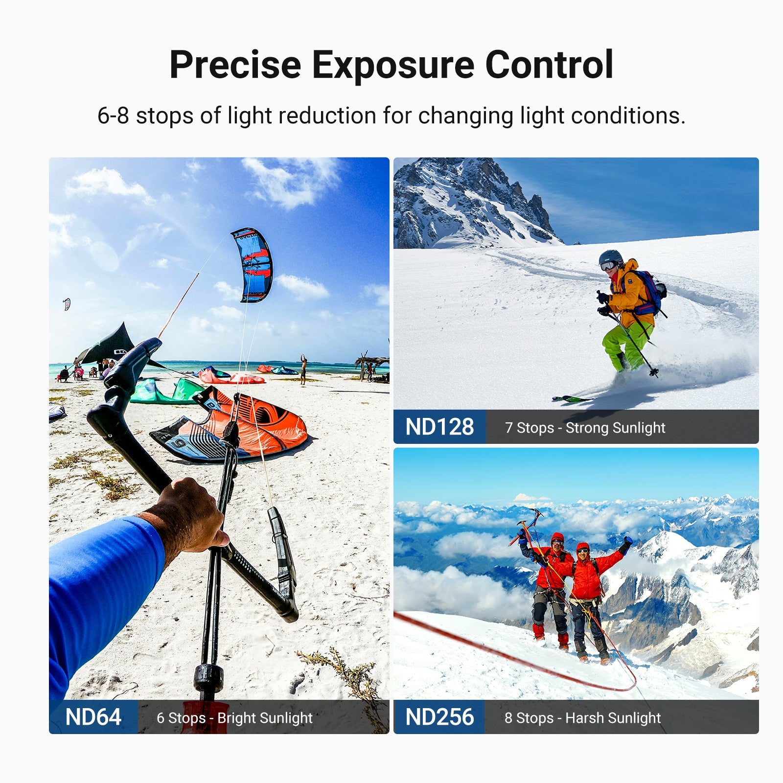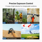 • Flexible Exposure Control- Variable ND64-256 filter cuts light by 6-8 stops to prevent overexposure in various conditions while adding dynamic motion blur effects. Rotate the frame for accurate ND adjustment