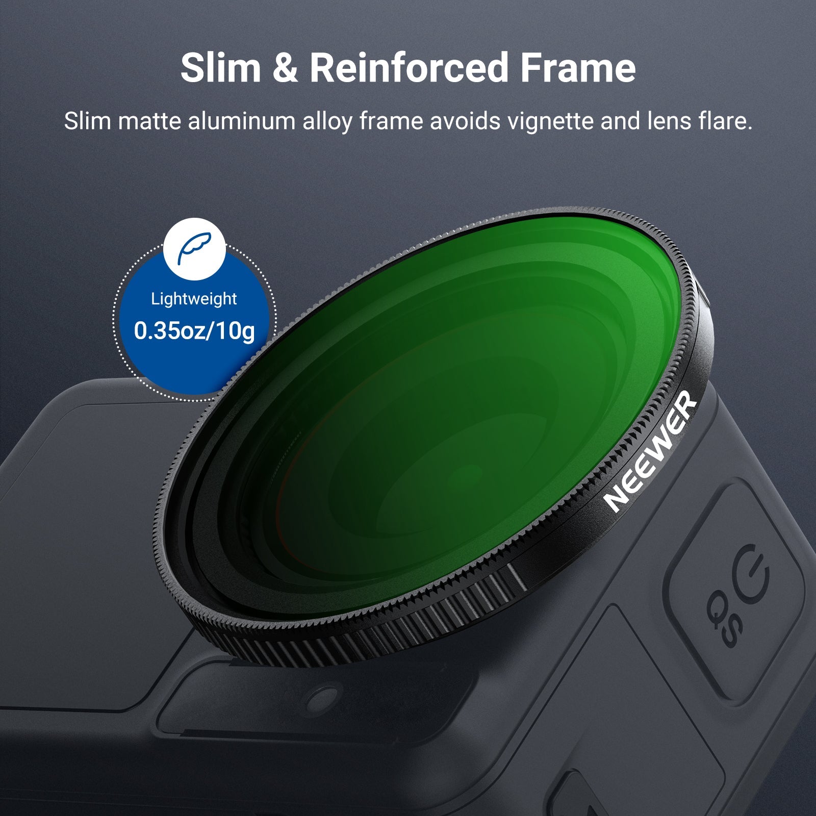 • Slim & Reinforced Frame- Slim matte aluminum alloy frame avoids vignette and lens flare while withstanding harsh outdoor circumstances