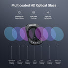 • Multicoated HD Optical Glass- Delivers sharp images while resisting water, scratches, smudges, and fingerprints during daily use