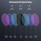 - Vidrio óptico HD multicapa : El vidrio óptico HD garantiza imágenes nítidas sin aberraciones cromáticas ni distorsión óptica. Múltiples capas protectoras en ambas caras resisten al agua, el aceite, el polvo y los arañazos para una alta durabilidad y una limpieza sencilla.