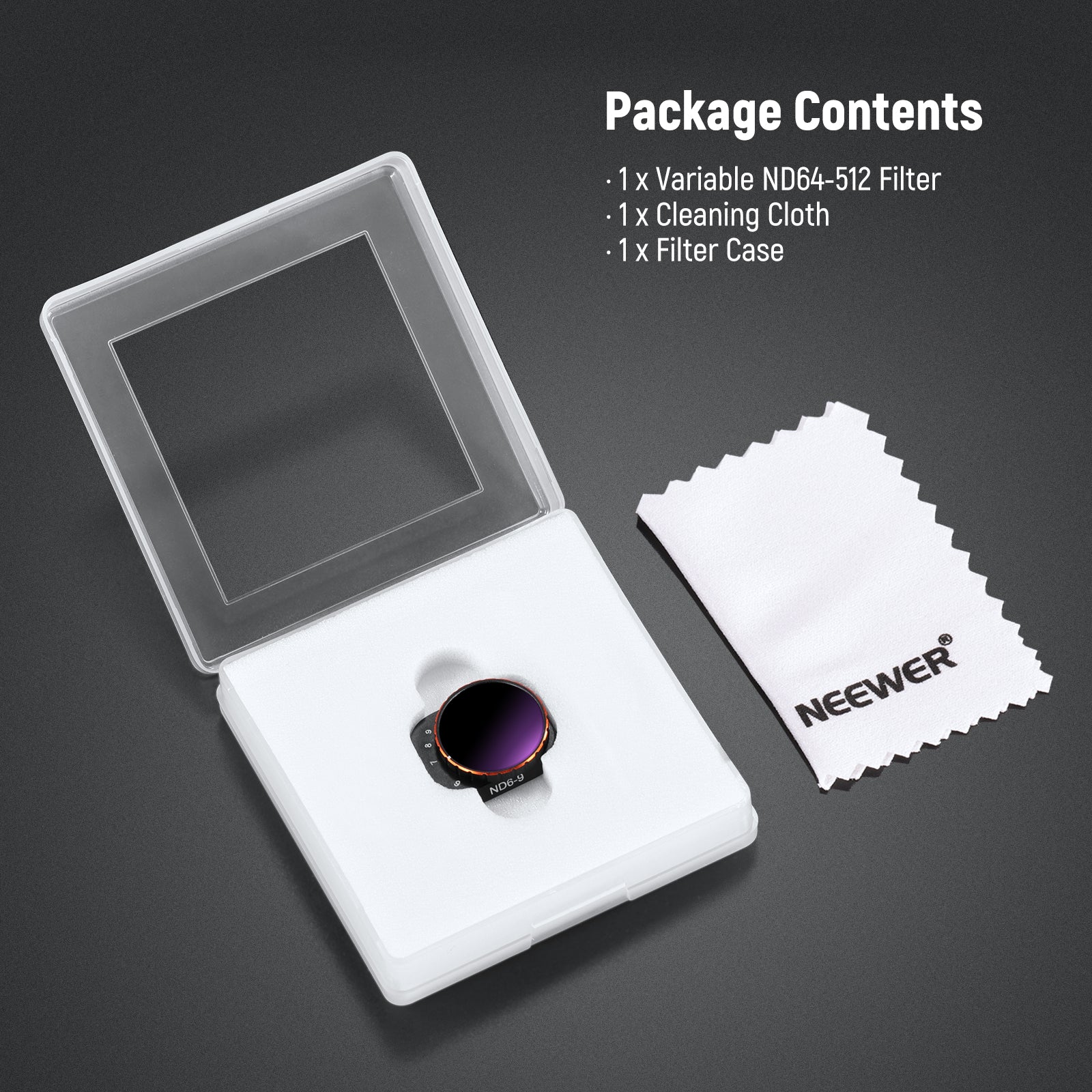 - Flexible Exposure Balance- The variable ND2-32 and ND64-512 filters reduce light by 1 to 5 stops and 6 to 9 stops, respectively, suitable for exposure control in diverse lighting conditions. They allow you to capture rivers, waterfalls, and light trails with dynamic motion blur—adding a cinematic touch to your drone footage