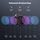 - Multicoated HD Optical Glass- HD optical glass ensures sharp images without chromatic aberration or distortion. Multiple protective coatings resist water, oil, dust, and scratches for effortless cleaning